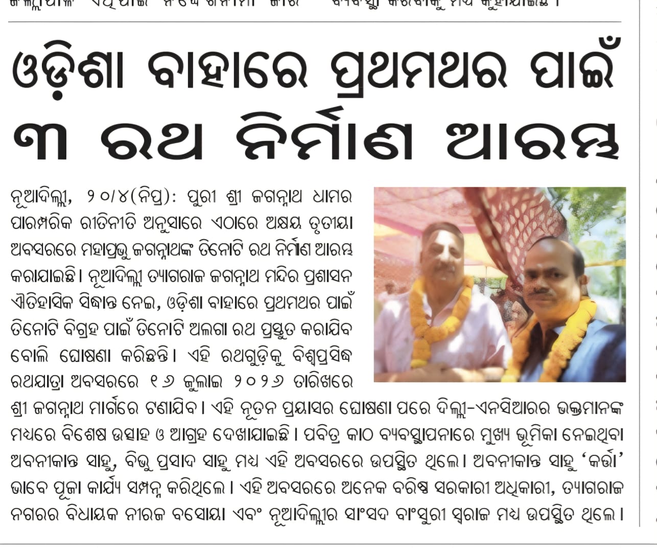 What makes this event truly remarkable is its uniqueness. While Rath Yatra is celebrated across many parts of India, the construction and pulling of three separate Rathas in Delhi is happening for the very first time. This bold and visionary initiative by the management of Thyagraj Jagannath Mandir has created a historic milestone outside Odisha.