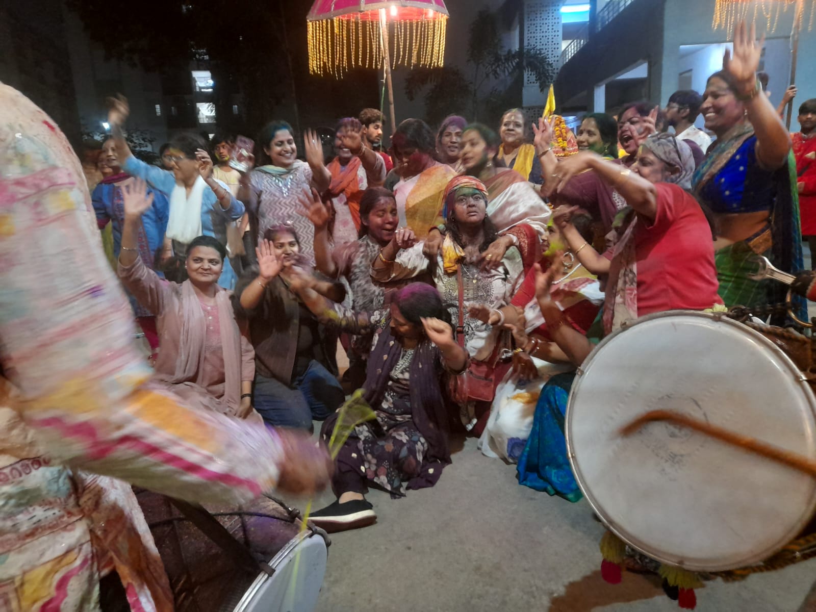 🕡 06:30 PM – कॉलोनी के अंदर गुलाल के साथ होली